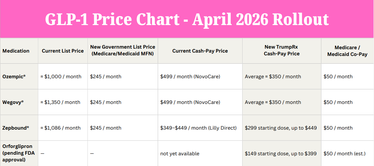 This new agreement brings the list price for brand name GLP-1 medications like: Ozempic, Wegovy, and Zepbound down to Most-Favored-Nation (MFN) levels, finally putting Americans on par with what other countries pay.